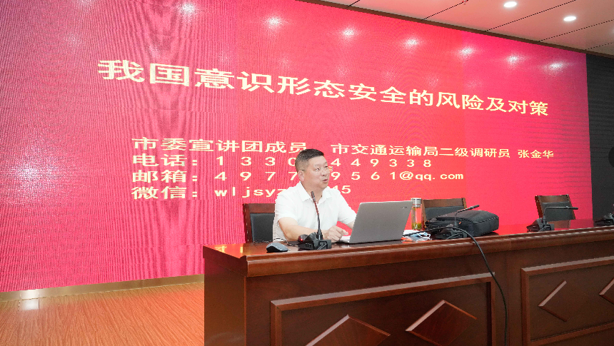 会上,全体成员还认真听取了市委宣讲团成员、市交通运输局二级调研员张金华所作的《我国意识形态安全的风险及对策》专题报告。
