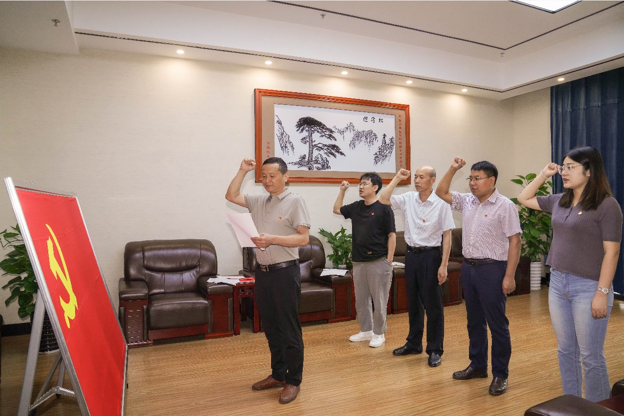 2、全体党员在张正华同志的带领下重温入党誓词。
