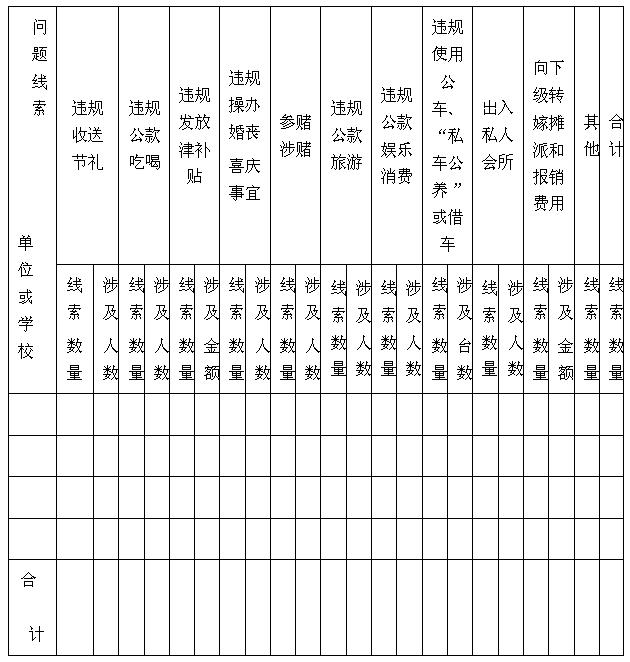 2016年中秋国庆期间纠正“四风”专项监督检查违规违纪线索汇总表