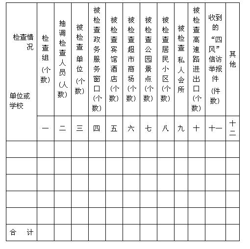 2016年中秋国庆期间纠正“四风”专项监督检查工作开展情况汇总表