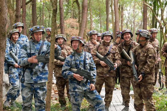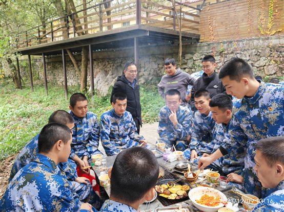 中餐前,作为军士生,军歌必不可少的内容,嘹亮的强军战歌响彻整片场地。