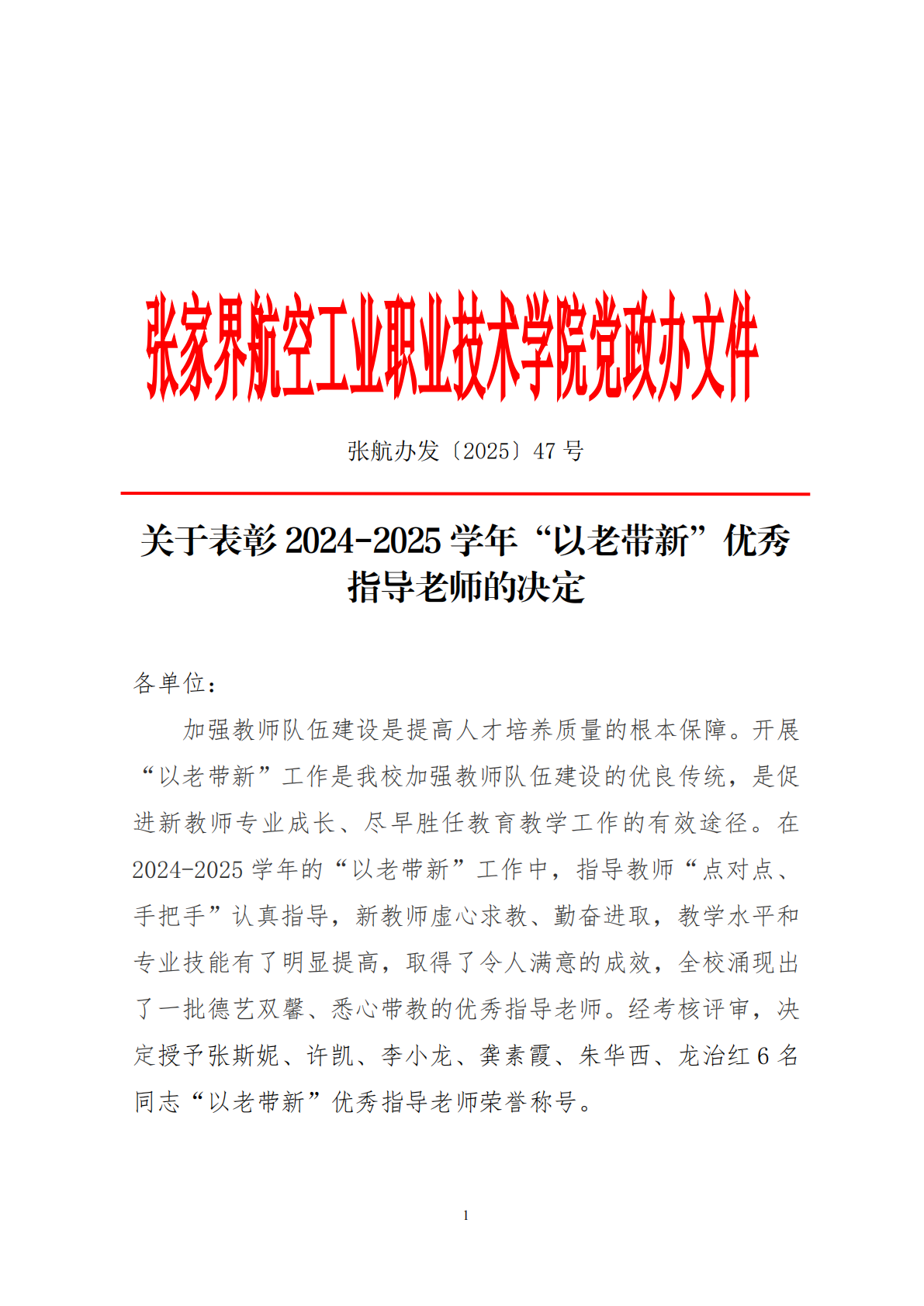 关于表彰 2024-2025 学年“以老带新”优秀 指导老师的决定