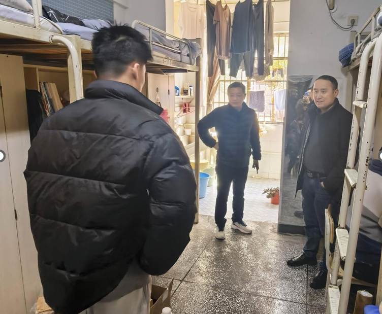 下午2时30分,检查队伍在4号学生公寓楼下集合。谭书记作动员讲话,强调宿舍安全是校园安全的重中之重,要求全体检查人员以高度负责的态度,认真排查安全隐患,同时注意方式方法,做到检查与教育相结合。对检查重点和分工安排进行部署,明确本次检查将聚焦违规电器使用、消防设施配备、私拉乱接电线、易燃易爆物品存放等重点领域。