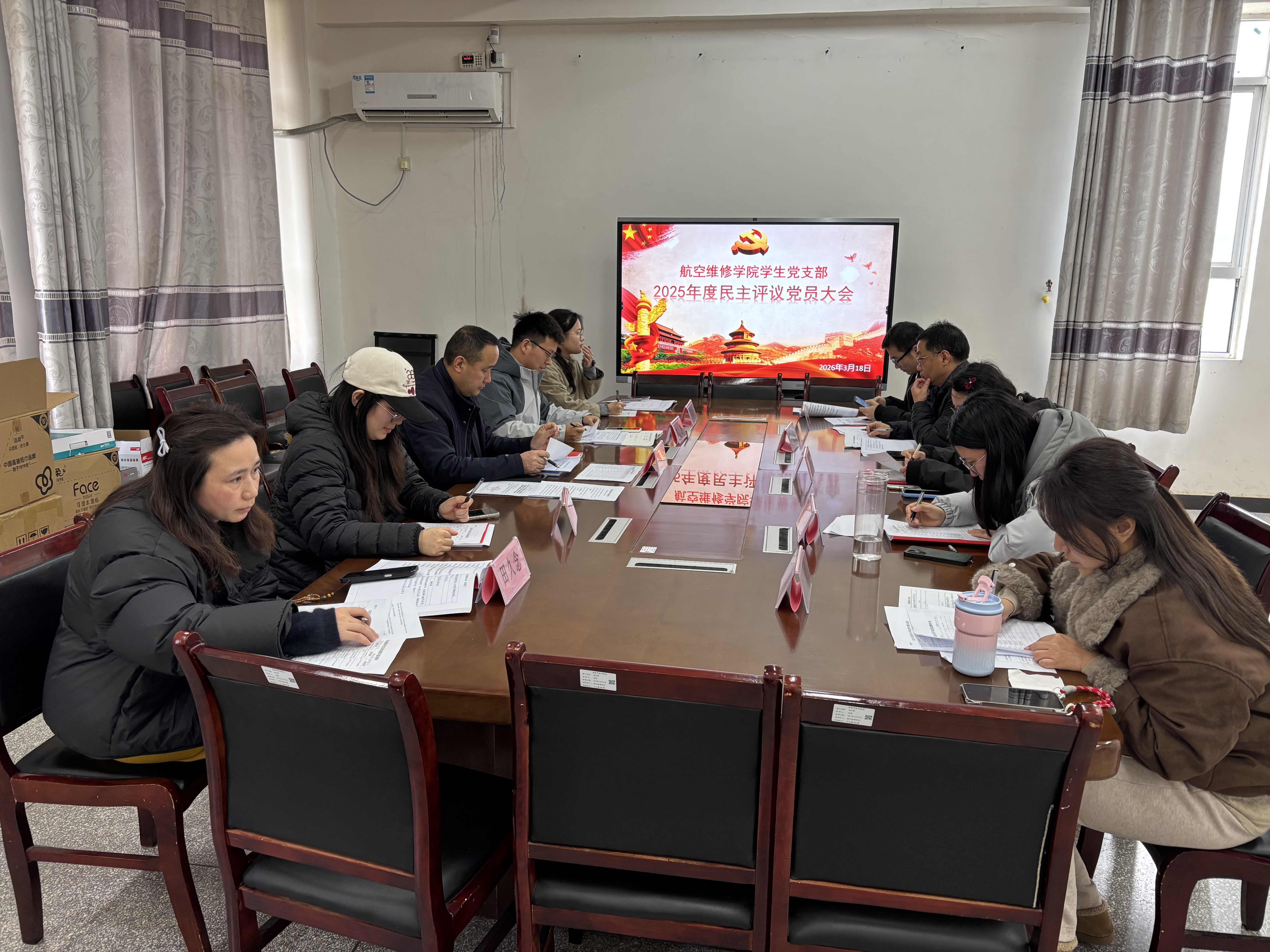 3月18日,航空维修学院学生党支部2025年度组织生活会和民主评议党员工作会议召开。会议紧扣“深入学习贯彻中央八项规定精神、推进作风建设常态化长效化”主题,深入查摆问题,严肃开展批评与自我批评。联系航空维修学院党总支书记谭本军同志到会指导。