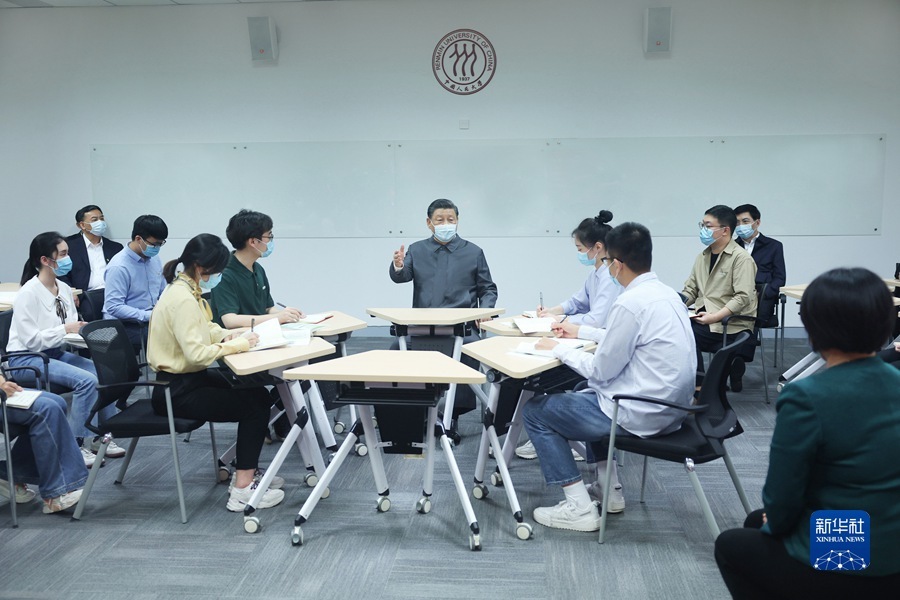 新华社北京4月25日电 在五四青年节即将到来之际,中共中央总书记、国家主席、中央军委主席习近平25日上午来到中国人民大学考察调研。习近平代表党中央,向全国各族青年致以节日的祝贺,向中国人民大学全体师生员工、向全国广大教育工作者和青年工作者致以诚挚的问候。习近平希望全国广大青年牢记党的教诲,立志民族复兴,不负韶华,不负时代,不负人民,在青春的赛道上奋力奔跑,争取跑出当代青年的最好成绩!