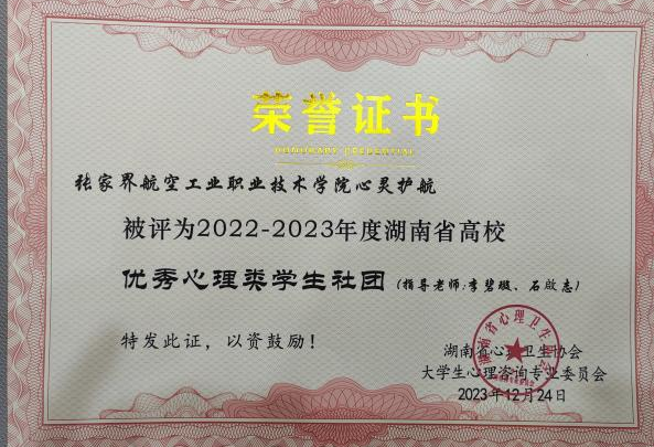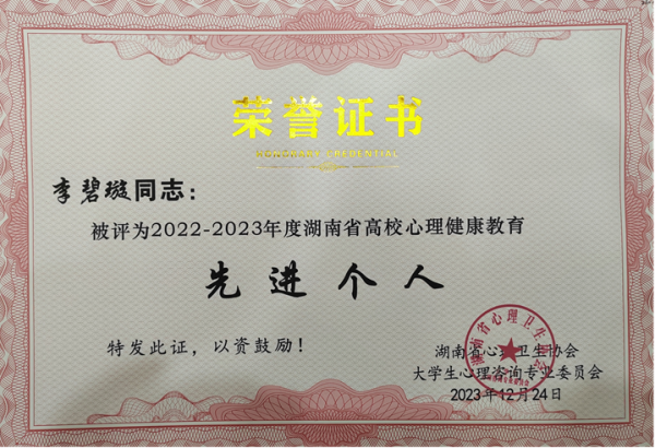 12月22日至23日,湖南省心理卫生协会大学生心理咨询专业委员会第十八届学术年会在长沙召开,来自全省60余所高校的心理健康教育中心主任、心理咨询老师参加了此次年会。会议表彰了一批心理健康教育先进单位和先进个人,我校荣获 “2022-2023年度大学生心理健康教育先进单位”,心理健康中心李碧璇被评为“2022-2023年度湖南省高校心理健康教育先进个人”,学校“心灵护航”社团被评为“2022-2023年度湖南省高校优秀心理类学生社团”。