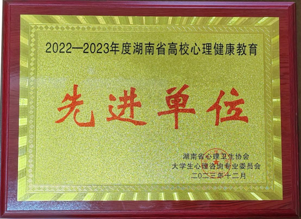 学校荣获湖南省2022-2023年度大学生心理健康教育先进单位