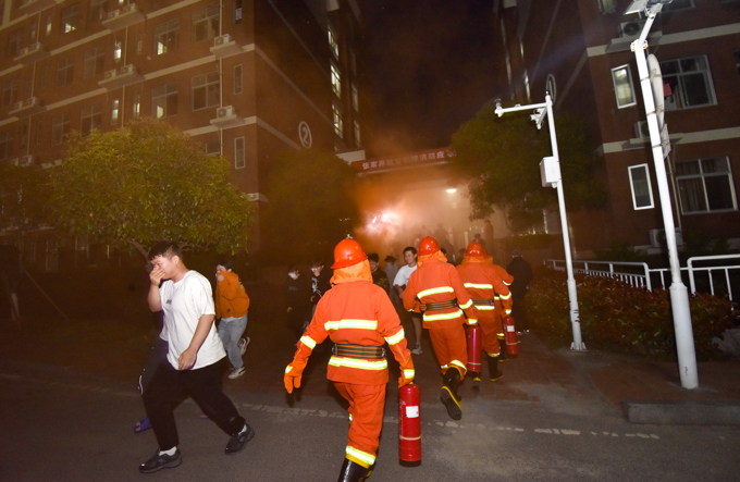 应急疏散演练地点设在学生宿舍1至8栋和足球场区域,以学生宿舍2栋315寝室电插板短路导致宿舍床单燃烧,引发火灾,火势迅速蔓延,楼层大量浓烟冒出;学生宿舍3栋5楼走廊热水机发生电路故障,引发火情,造成大量浓烟引发火情为假设情景展开。晚上19时30分,伴随着学生宿舍楼内冒出的阵阵浓烟和消防警报声,消防救援行动随即展开。