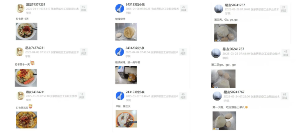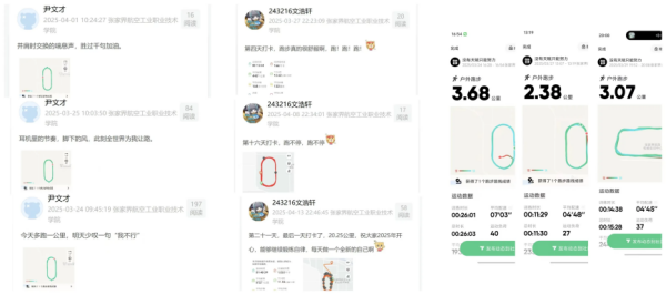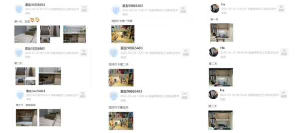 在“精读之韵”赛道,大家每日坚持阅读,认真手写阅读内容、摘抄经典语句、分享阅读感悟。针对这些分享,同学们热烈讨论,思维在一来一往的交流中不断碰撞,让阅读收获更加丰富。“净雅之隅”赛道聚焦生活细节,同学们用心整理宿舍内务。曾经杂乱的床铺变得整齐,堆满杂物的桌面焕然一新。他们用镜头记录下这些变化,让宿舍充满温馨与秩序,诠释着“以规整焕新空间,以秩序对话生活”的理念。“静息之律”赛道中,清晨的第一缕阳光成为活力的序章。早起打卡的记录里,不仅有准时用餐的自律,更藏着对生活的热爱与对健康的追求,每一张截图都是自律的勋章,都是开启美好一天的能量密码。