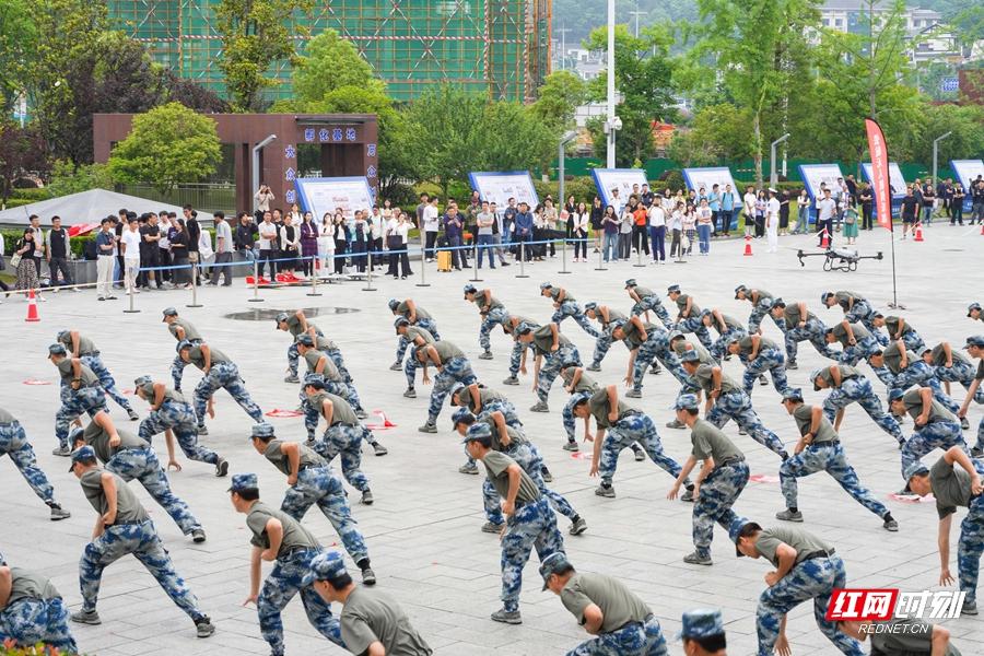 招聘会前,张家界航空工业职业技术学院还举行了军士生军体拳表演和无人机飞行表演,充分领略了学院独特的文化魅力与专业特色。