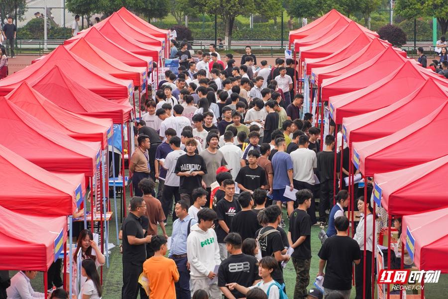 红网时刻新闻5月30日张家界讯(记者 张潘 通讯员 查梦江 陈鑫 张浩 宁昱豪)172家企业参加,提供职位464个、岗位12457个。吸引5000多名毕业生到场求职……5月29日上午,张家界航空工业职业技术学院2025 年春季大型招聘会举行。学院党委书记曾自立,其他领导班子全体成员、以及各部门、二级学院相关负责人和辅导员现场指导学生应聘。