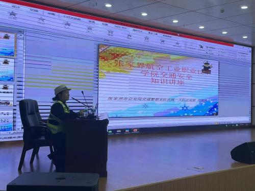 为进一步提升学生文明安全出行意识,推动交通安全、交通法制教育工作的深入开展,5月11日,五年制高职部联合保卫部,邀请张家界市公安局交通警察支队直属一大队法宣股刘梦鸿警官来校开展交通安全知识讲座。